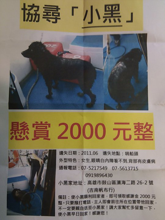 █████請高雄的朋友幫忙留意█████西子灣協尋"小黑",小黑不小心落海,海巡署人員救起後,放至統一渡假村附近,飼主已尋找5天,都沒有下落,小黑因有白內障,所以雙眼都看不見,請有看到的人盡速聯絡飼主