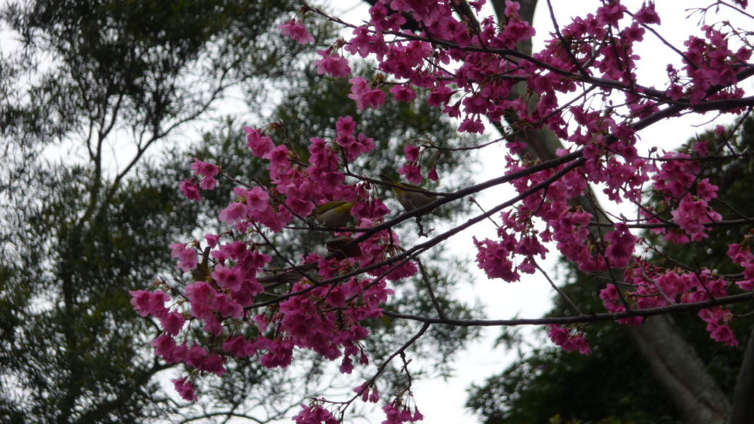 緋寒櫻(山櫻花).綠繡眼