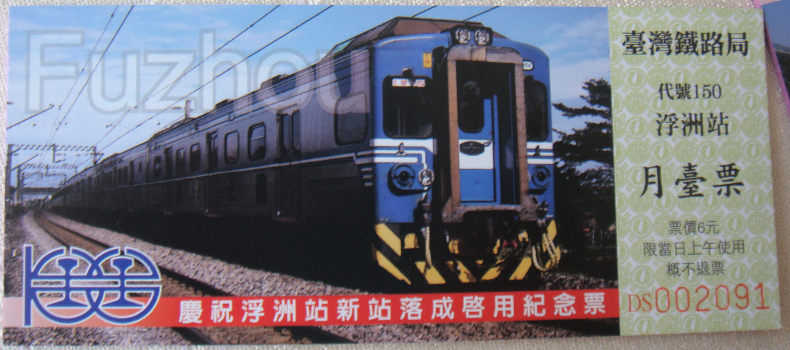 浮洲站上午紀念月台票(正面)